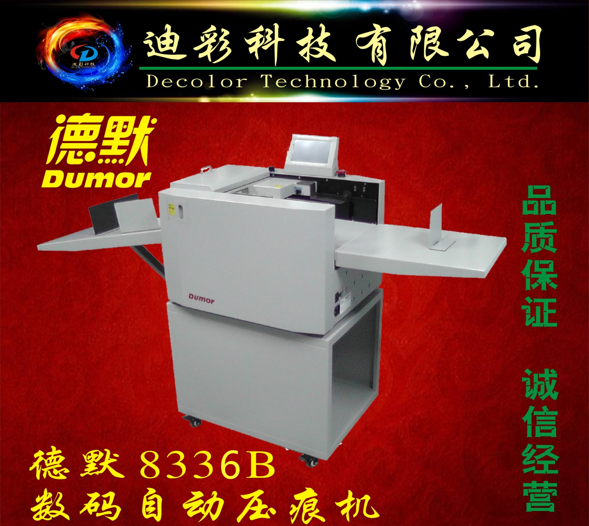 廣西迪彩科技有限公司是一家專業從事印后裝訂設備和耗材銷售與服務的企業。公司經營產品涵蓋了從膠裝、切紙到裝訂成冊等多種印后裝訂設備及耗材,經營的品牌有:前鋒、宏基、明月、惠普樂、德默、佳能、道頓、迪霸、光明、森威、新彩、經典、科創、湘圖、迪仕冠、海軍上將、理鋒、艾美多、好利用等。公司致力于為客戶提供多方位的裝訂解決方案與售后服務。 公司主營產品有:膠裝機、切紙機、覆膜機、數碼壓痕機、數碼壓痕折頁機,數碼壓痕裁切機,疊圖機、繪圖儀、工程機、異形切割機、騎馬釘、冷裱機,訂折機、燙金機、圓角機、淋膜機、塑...